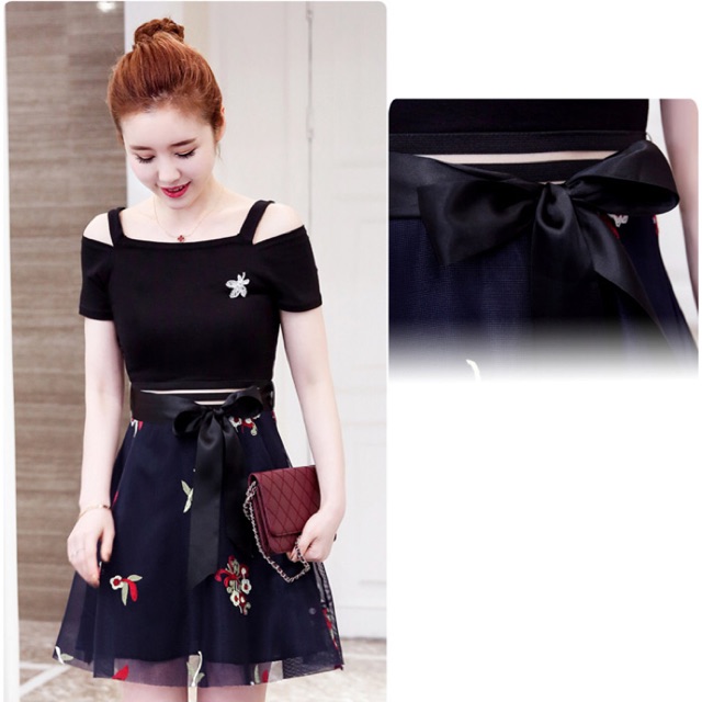 Sét áo Rớt Vai Chân Váy In Hoa 11441843