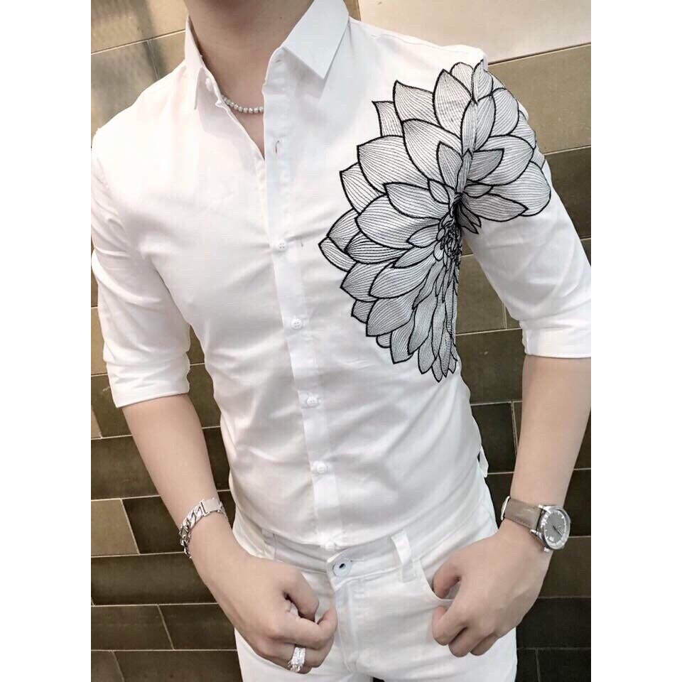 áo Sơ Mi Nam 2 Màu đen Trắng Thêu Họa Tiết Giảm 75