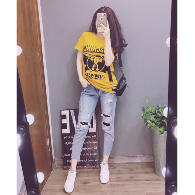 Set đồ áo Thun Nữ đẹp Với Quần Jeans Cực Chất Giá Hạt Dẻ đón Hè Về