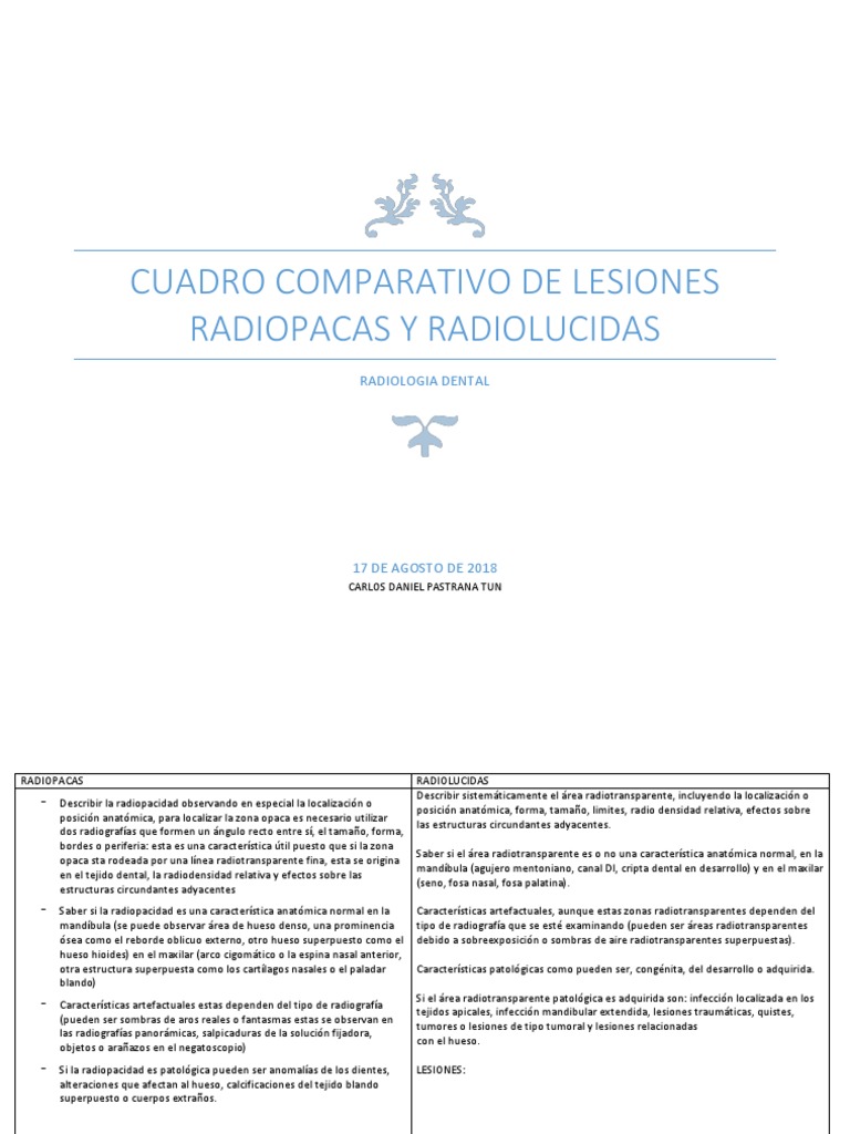 CUADRO COMPARATIVO DE LESIONES RADIOPACAS Y RADIOLUCIDAS.docx | Hueso | Diente