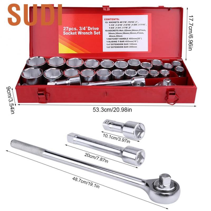 Sudi Cuque 27pcs 3 4 Inch Standard Socket Wrench Set Steel Drive Spanner For Car Truck Caravan Shopee Malaysia